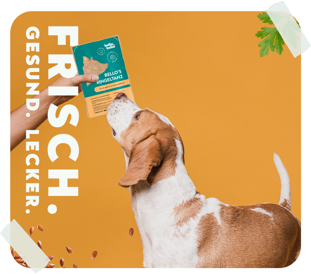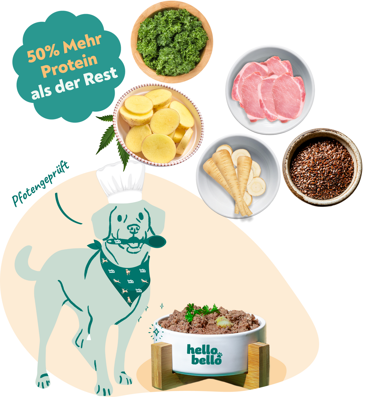 Ersetze 50% des aktuellen Futters deines Hundes durch HelloBello Vollwertnahrung.