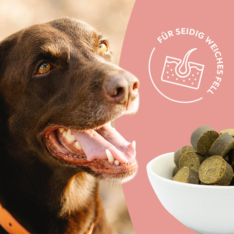 Der Zweck dieser Hundekekse ist es, die Haut und das Fell deines Hundes dauerhaft zu unterstützen und zu fördern. Im Falle einer akuten Erkrankung können sie eine sinnvolle Ergänzung sein, ersetzen aber keine Medikamente und den Besuch beim Tierarzt.